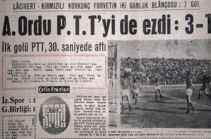 İLK GOL: 1964-65 Sezonunda 18 yaşındayken 15.11.1964 günü PTT’ye karşı ilk golünü kaydeder. (Altınordu: 3 – 1 PTT ) (ikinci Altınordu golü)