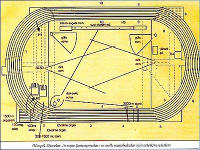 Gülle, cirit, disk ve çekiç atma var. Engel havuzları var. Yüksek, uzun ve üç adım atlama kum havuzları var. Sırıkla atlama var...Keşke çocuklarımızı önce atletizm ve yüzmeye yönlendirebilsek...