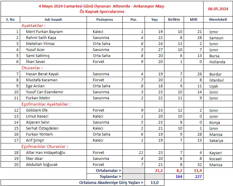 2016 ila 2024 arasında tam 82 Öz Kaynak Sporcumuz Genç Milli Takım forması giydi. 45'i aramızdan ayrıldı. Başta Çağlar Söyüncü ve Cengiz Ünder olmak üzere hepsi liglere dağıldılar. Ekmeklerine kılıç sallıyorlar, Allah hepsinin yolunu açık etsin.